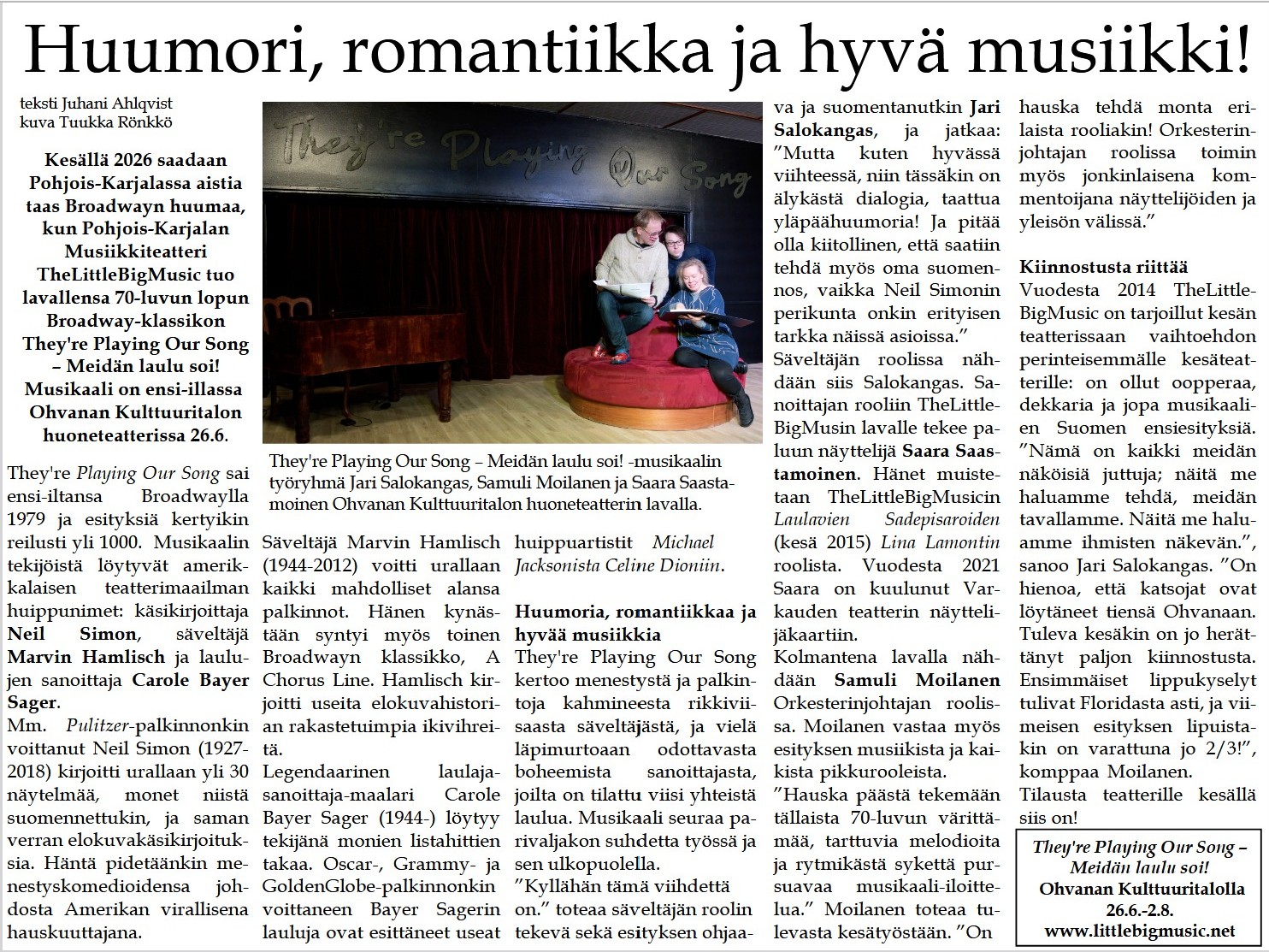 Huumoria, romantiikkaa ja hyvää musiikkia.