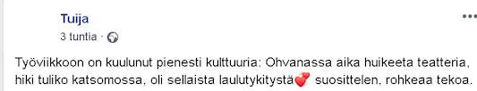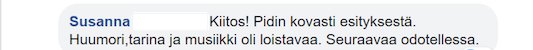 Yleisön palautteita facebookista ja lehtien palstoilta: